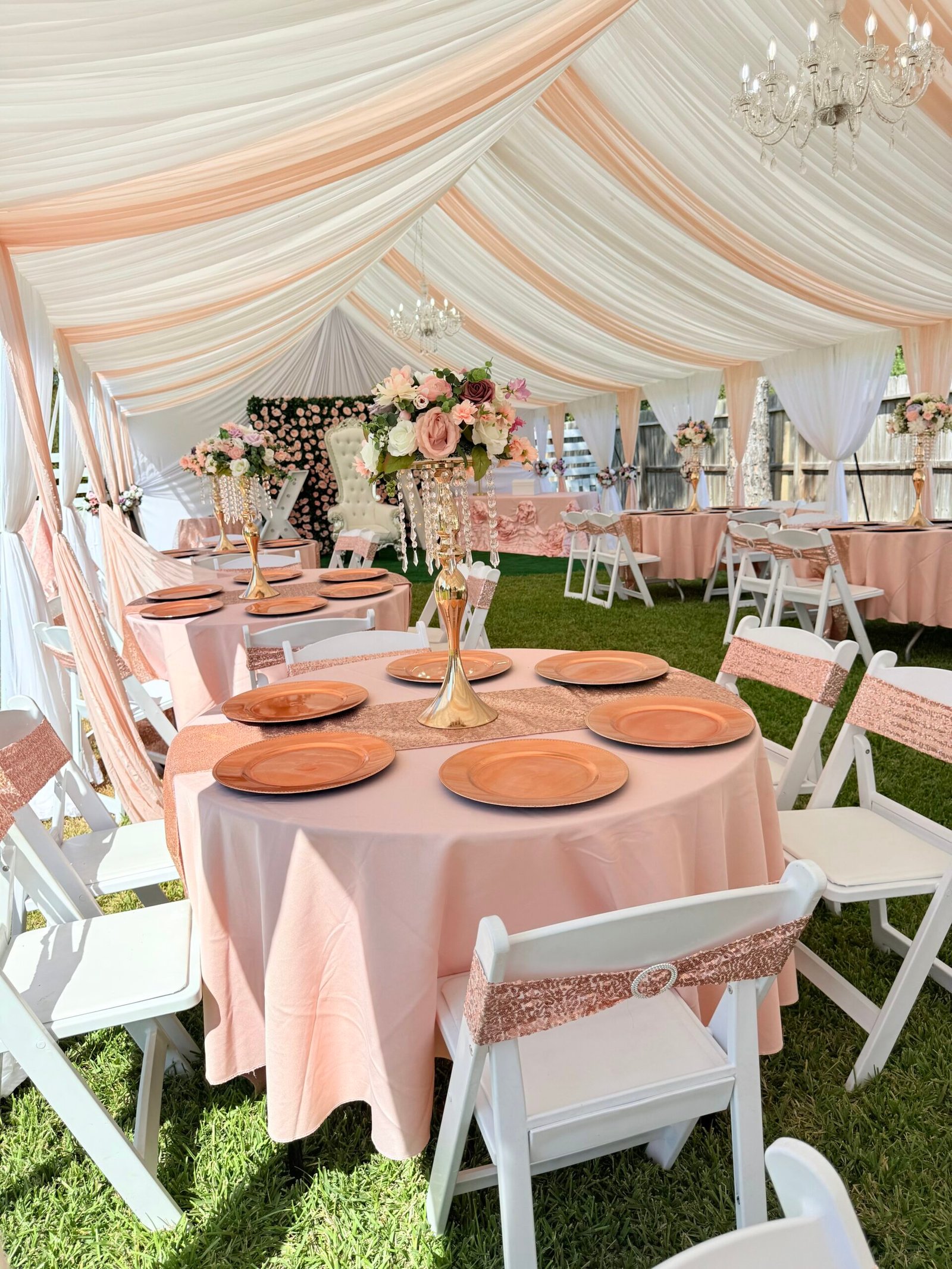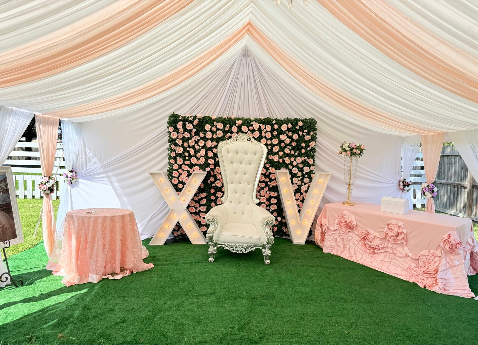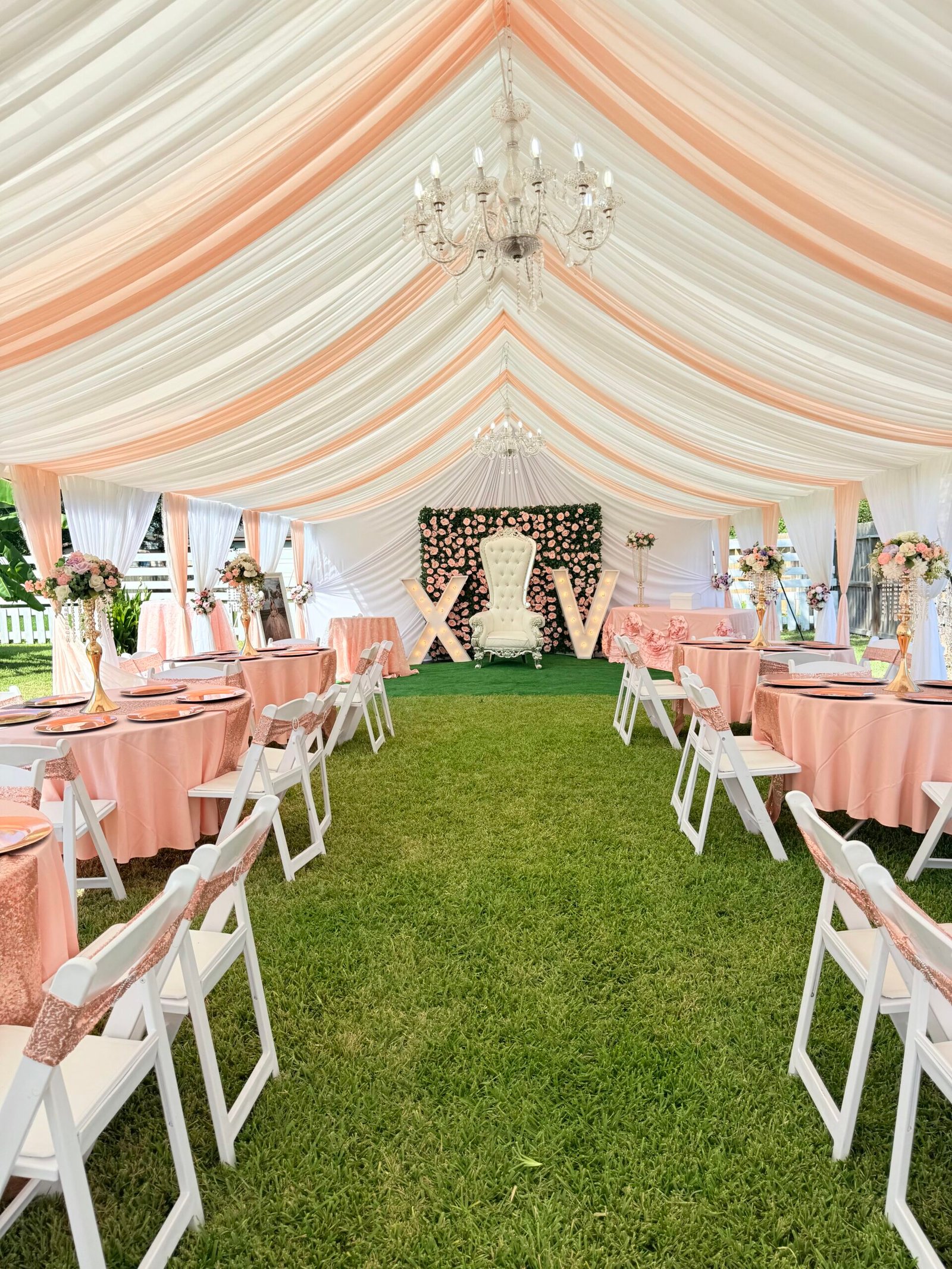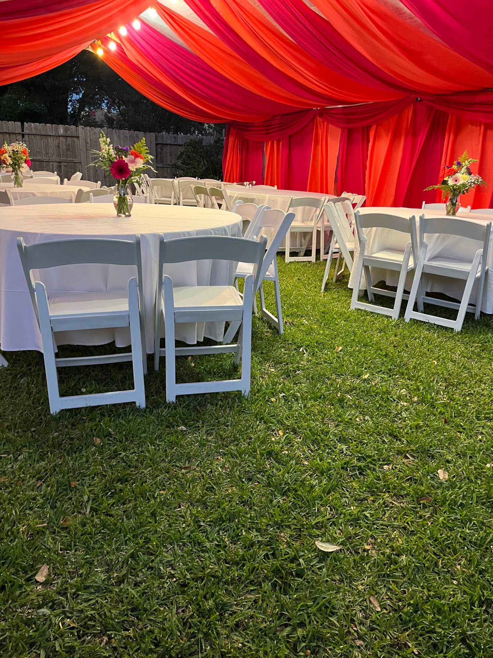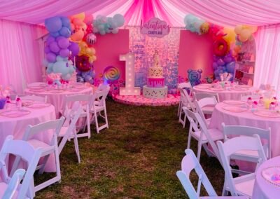 Tents Rentals Decorated Tents Tablecloth Rentals Stage Rentals Chairs Rentals Tables Rentals Chairs for Sale Ballons Decor Moonwalks Rentals Marquee Numbers and Letters La Casita Eventos (Venue Hall) Outdoor Lighting Installation More