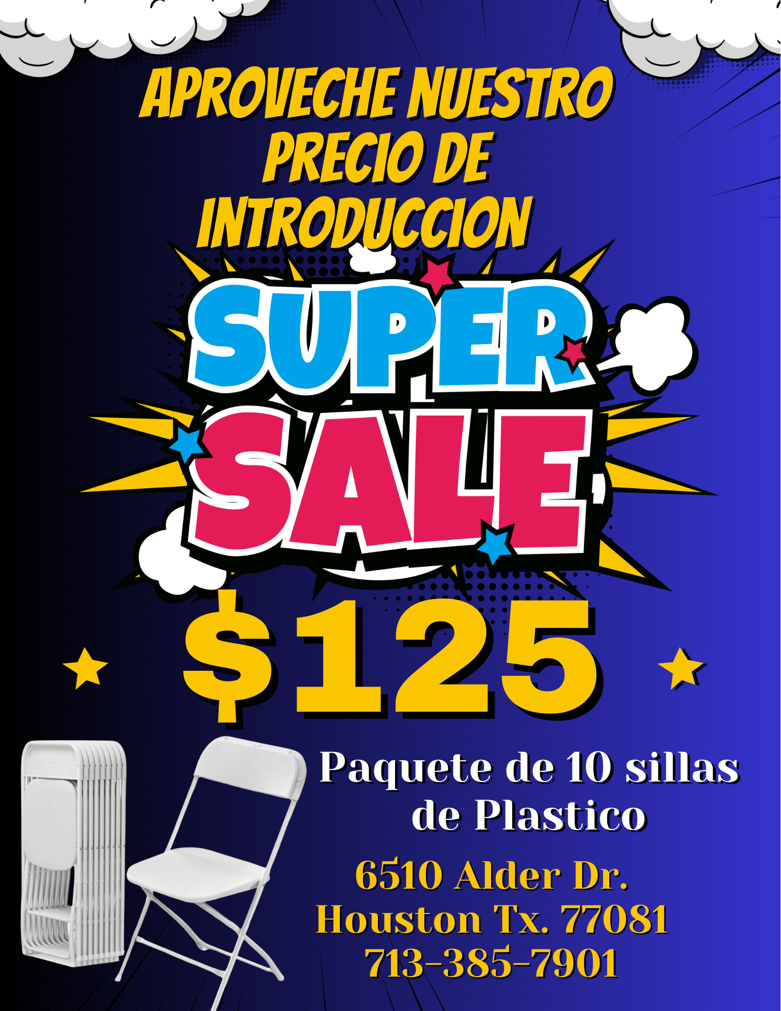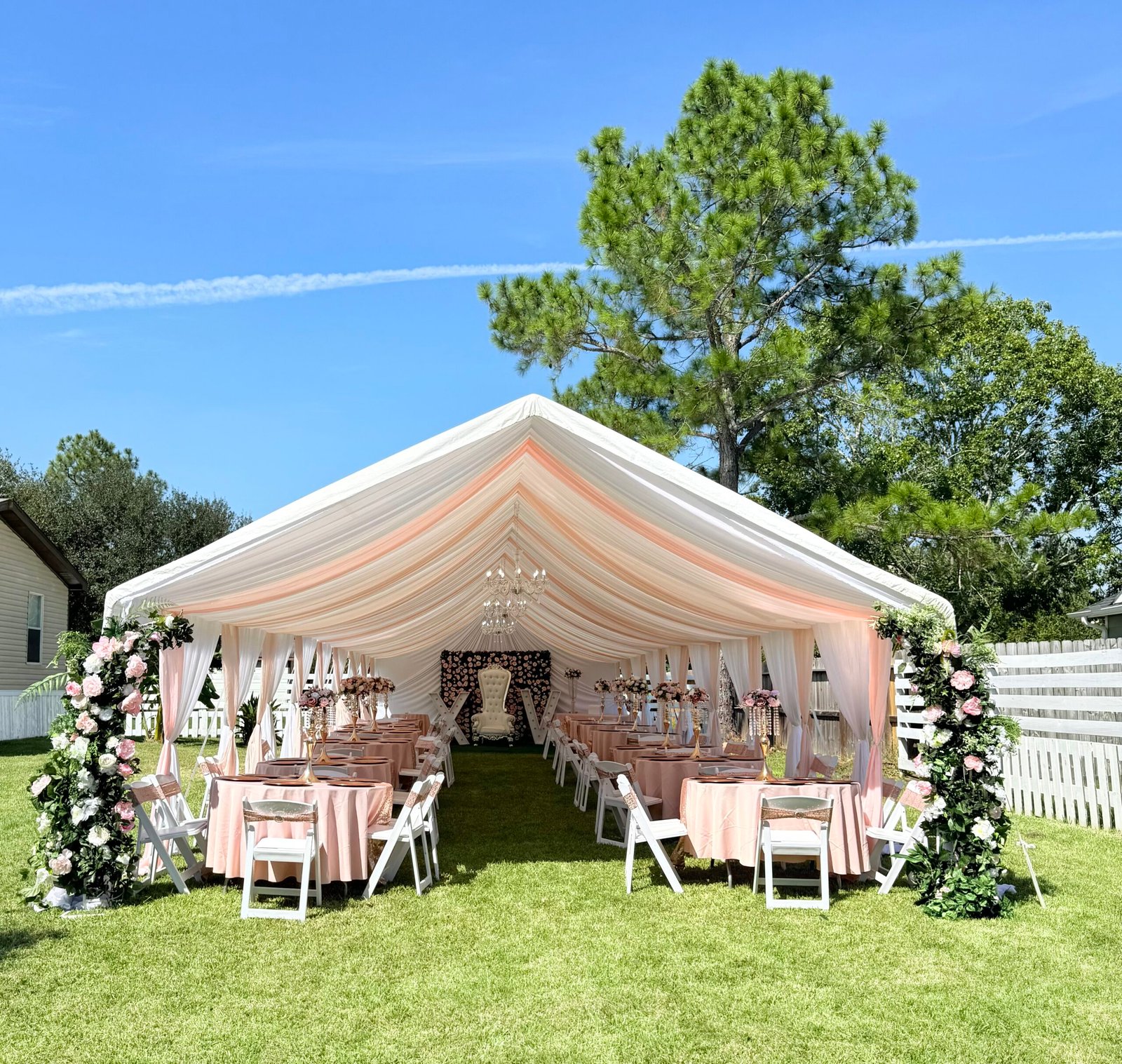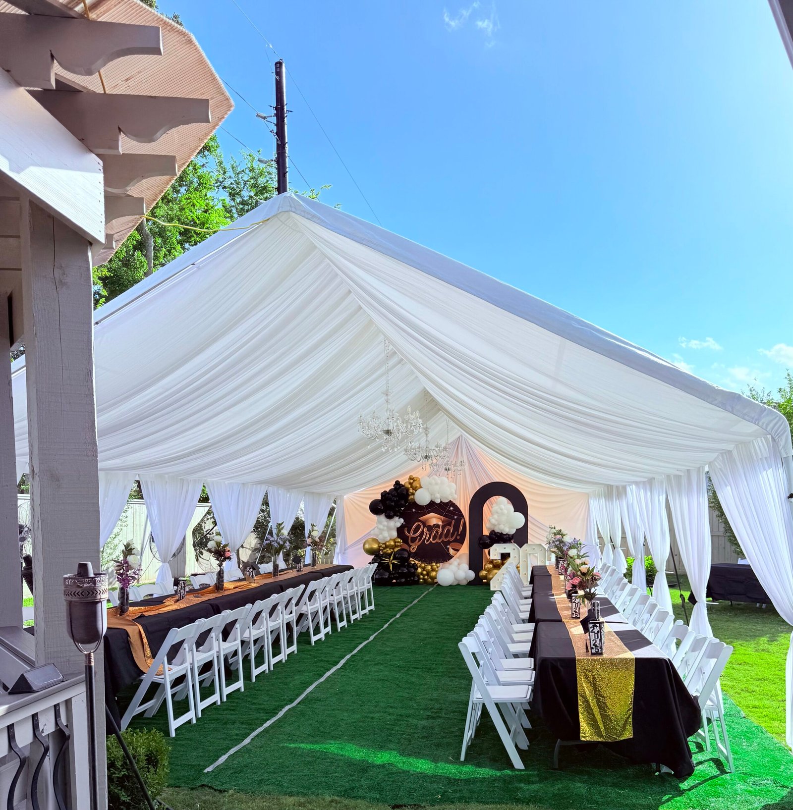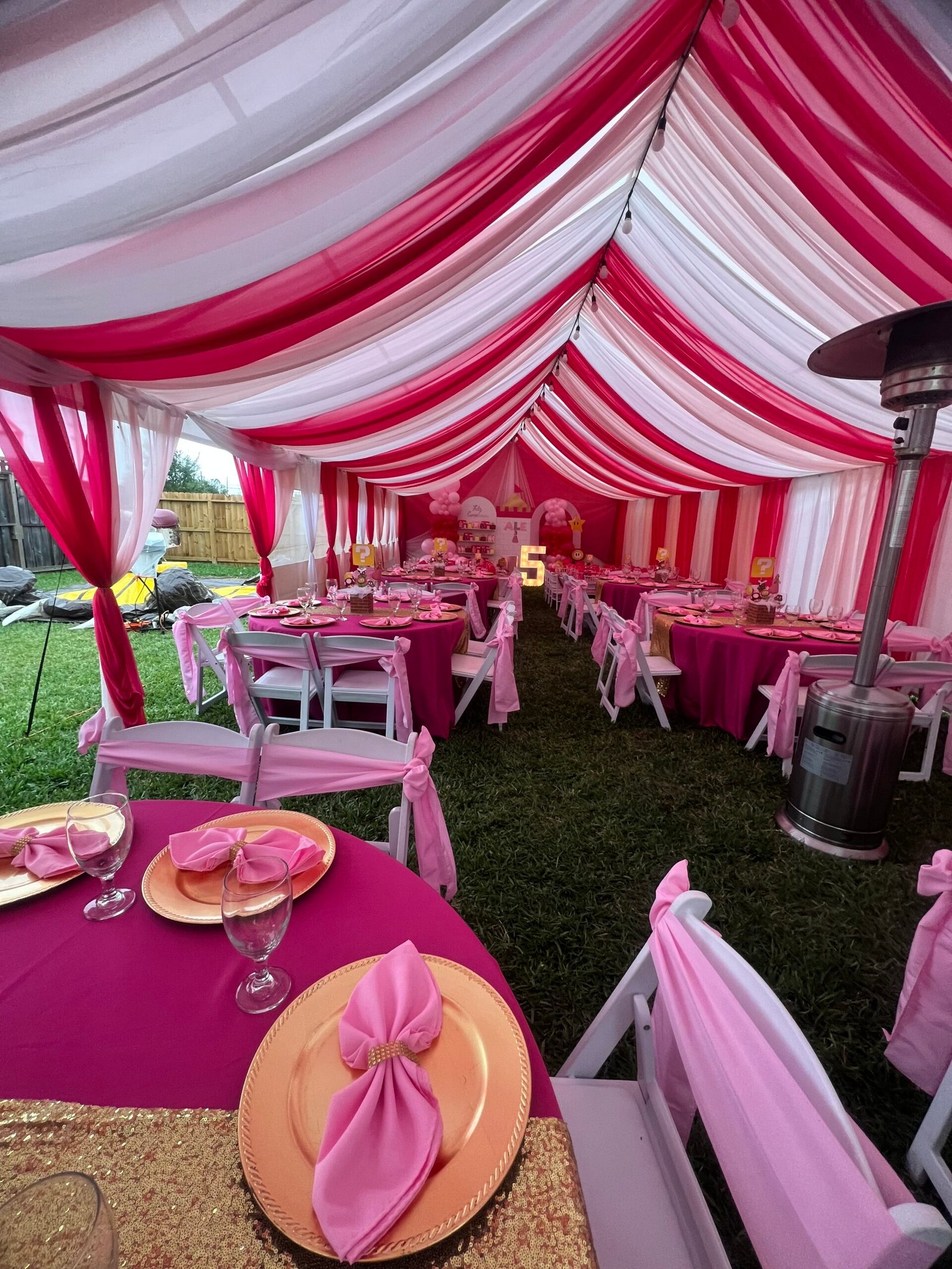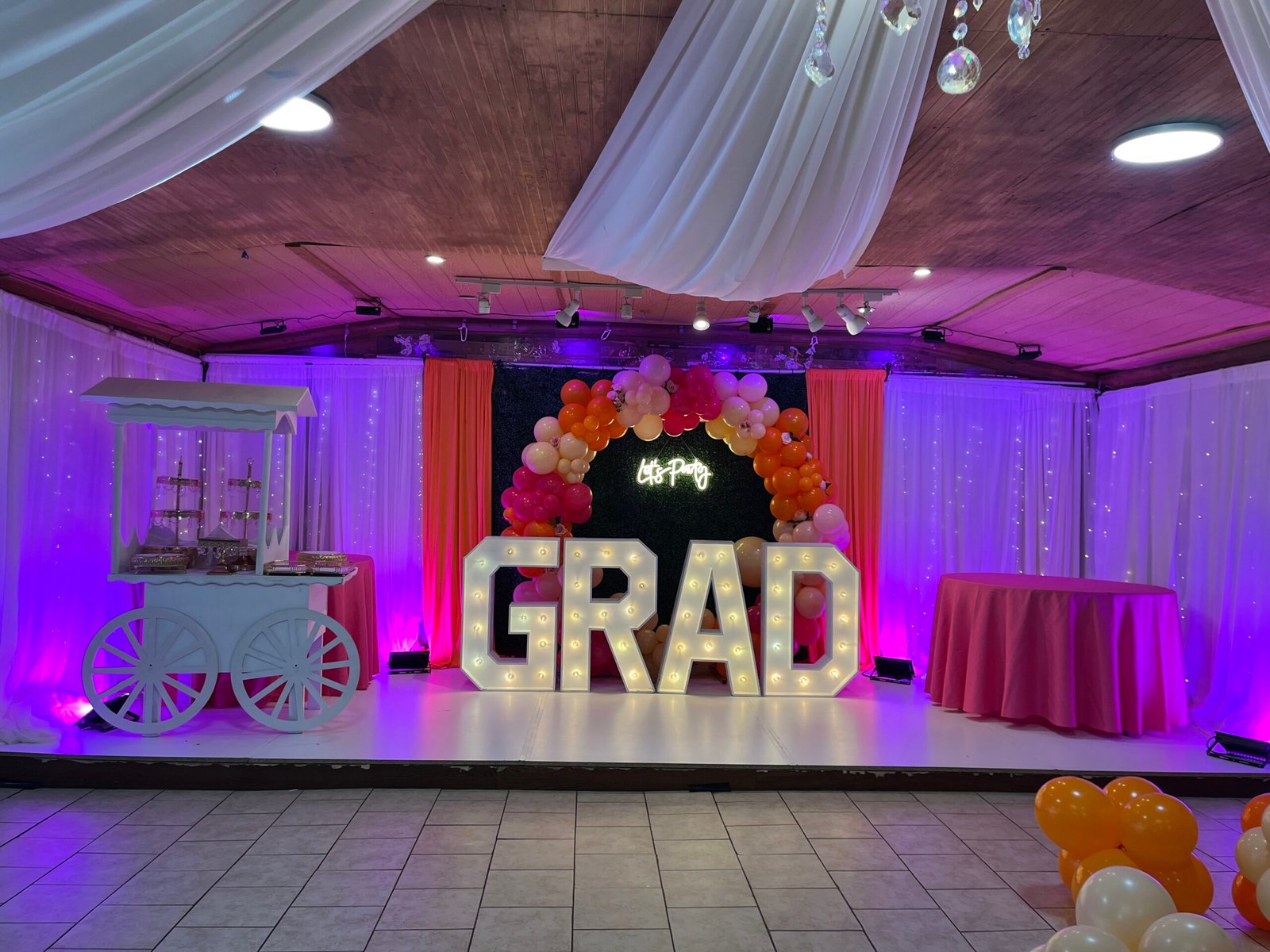 Tents Rentals Decorated Tents Tablecloth Rentals Stage Rentals Chairs Rentals Tables Rentals Chairs for Sale Ballons Decor Moonwalks Rentals Marquee Numbers and Letters La Casita Eventos (Venue Hall) Outdoor Lighting Installation More